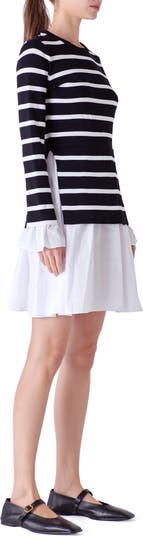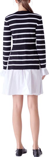 English Factory Women S Scalloped Knit Poplin Combo Dress Saintbernard Com